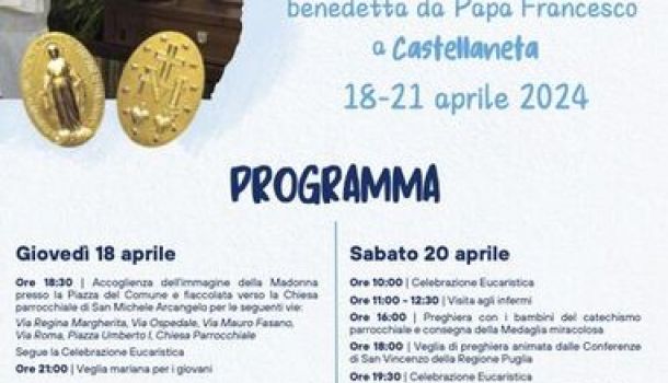 "Tre giorni con Maria” a Castellaneta. Nuova tappa pugliese per il pellegrinaggio nazionale della statua della Vergine della Medaglia Miracolosa