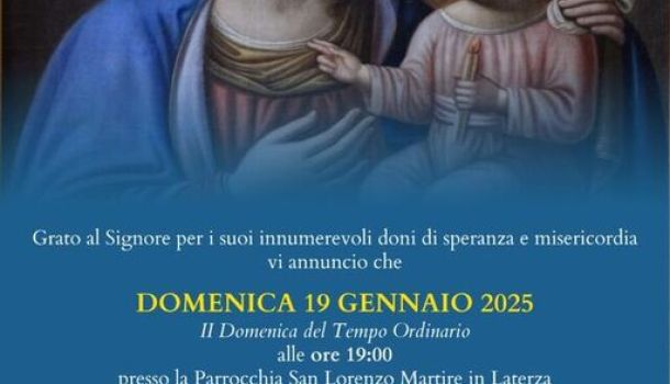 Da Giovedì 20 Febbraio a Domenica 23 Febbraio 2025, la comunità di Laterza ospiterà il pellegrinagg…