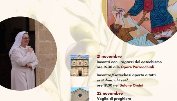 Sabato 23 Novembre 2024 alle ore 18.00 presso la Parrocchia San Nicola di Palagiano Sr. Palma Mando…