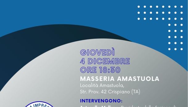 Giovedì 4 Dicembre 2025 alle ore 18:30 presso Masseria Amastuola (Località Amastuola, Str. Prov. 42…